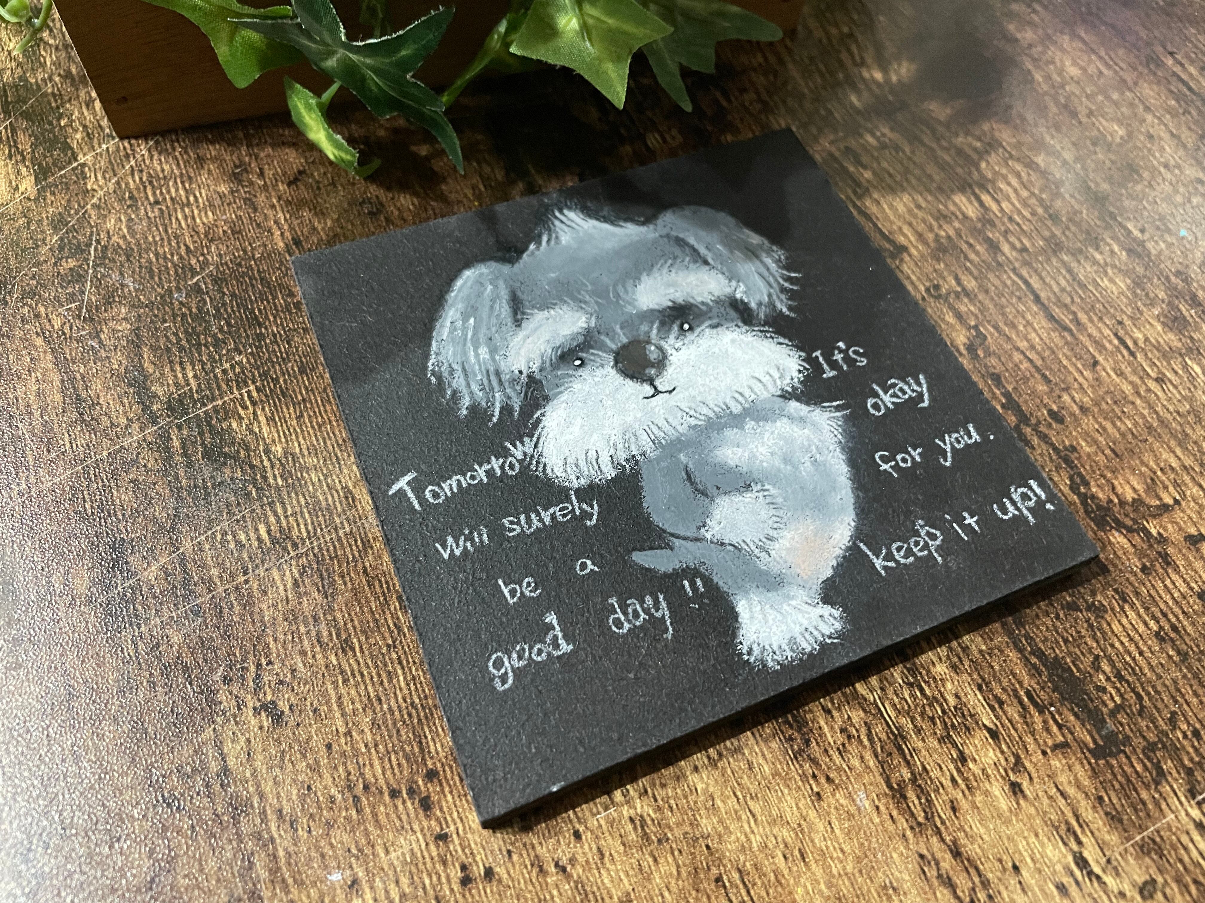- 作品名: ミニチュアシュナウザー☆明日はきっといい日になる☆チョークアート