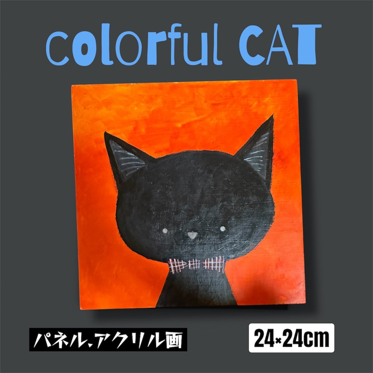 魅力的なカラフルにゃんこのアクリル画、特に黒猫をテーマにした作品です! サイズは24×24cmで、リビングや寝室など多様な空間にぴったりです。気ままな黒猫が、あなたの毎日に素敵なアクセントを加えます♪