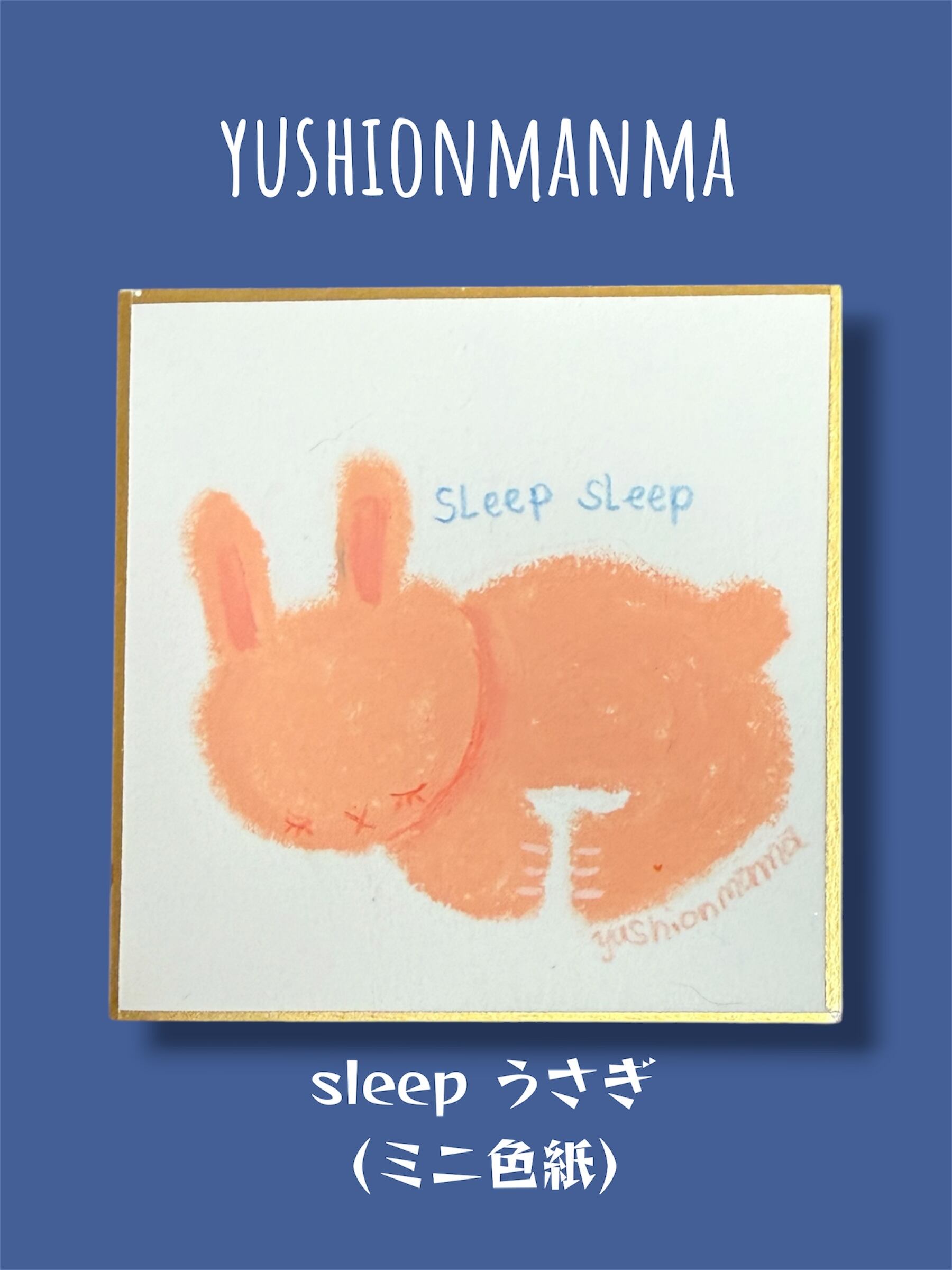 ミニ色紙☆sleepうさぎ☆オイルパステル画