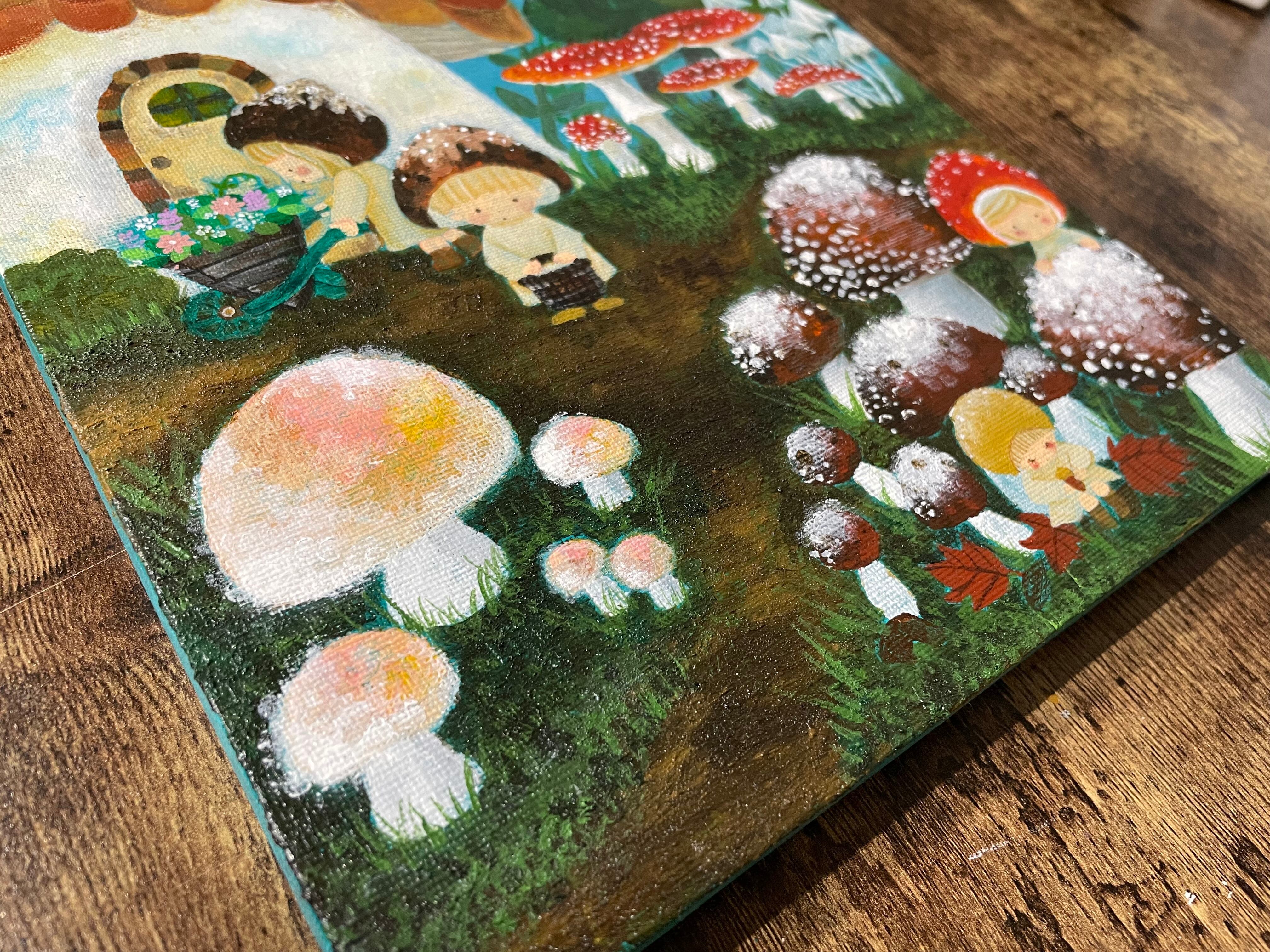 密やかなキノコの森の世界☆アクリル画☆yushionmanma作品☆