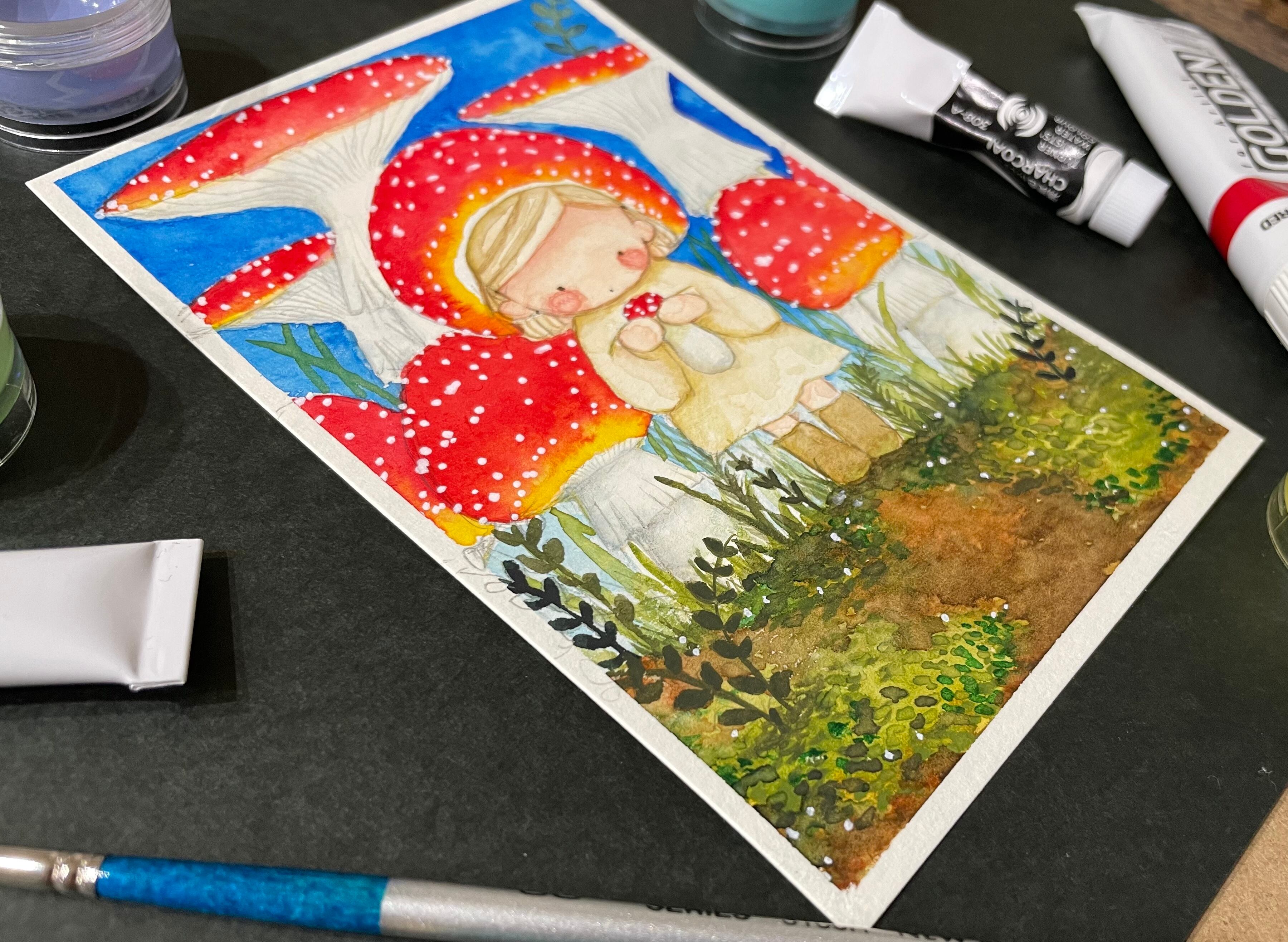 キノコの女の子「水彩絵の具」